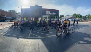 Social media – This one is worth three points per post, one post per day. Please upload your pictures from a stage to Facebook or Instagram with #tourdesurgeon; also feel free to tag one or multiple sponsors; using the @ sign before each business name to have them come up correctly: Bike Surgeon, The Korte Company, Gilster Mary-Lee, Smoothie King O’Fallon, North Bay Produce, Lagunas Roofing, Aggressive Graphics, Cardin Photography & Motion, Superior Construction, Raymond James, Barnes Properties, Roots, Le Ono, ReMax Emily Greenstreet, Cycle Life Cycle. At the next time you check in for a TDS ride show the crew member in charge of check in your post and they will notate your points. We used to be able to handle this check via the social platforms, but due to changes (thanks bookFace) we can no longer guarantee consistency in that way of scoring so we have gone back to the old school way of doing it, show us your post in person and get points for it on the following day.- At the end of the event, the most Clever/Creative/Epic picture or video of the year involving a team sponsor will be selected for a 25 point bonus (selected by a third party judging panel). To participate in this piece of the competition please shoot a link to your awesome post to us at: info@bikesurgeon.com.